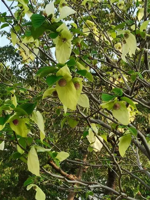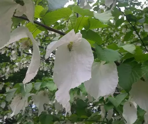 珙桐树 珙桐,春末夏初开花,从初开到凋谢色彩多变,一树之花,次第开放,异彩纷呈,人们称赞它为“一树奇花”。关于它,有这样一段佳话。