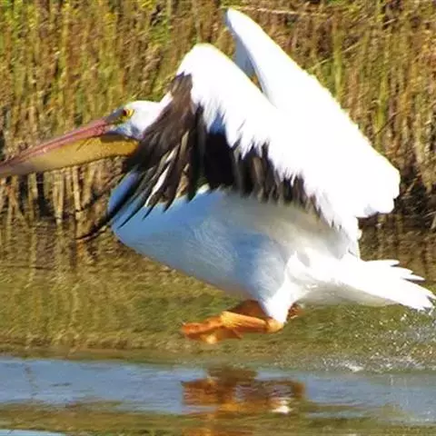 卷羽鹈鹕是一种大型的白色水鸟,体羽灰白,眼浅黄,喉囊桔黄或黄色,颈背具卷曲的冠羽。是生活在沼泽及浅…