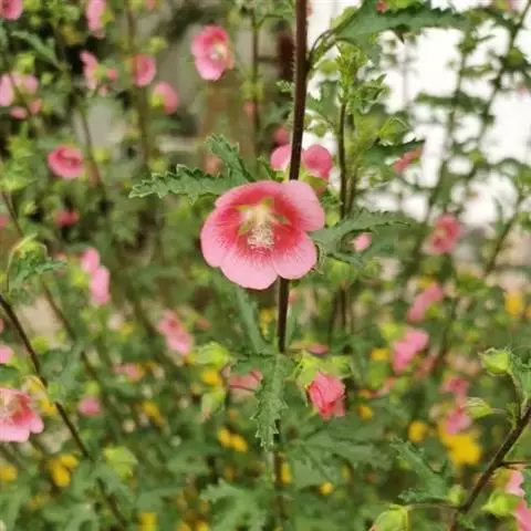 高砂芙蓉,是锦葵科、孔雀葵属的落叶小灌木,又名巴氏槿、粉葵、戟叶孔雀葵、戟叶粉葵、矛叶锦葵。