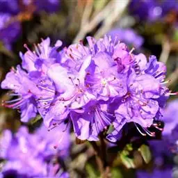 兴安杜鹃是杜鹃花科、杜鹃花属半常绿灌木,高可达2米,分枝多。叶片近革质,椭圆形或长圆形,…