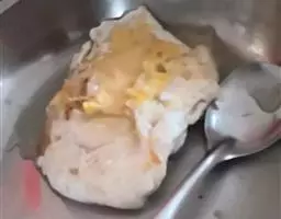 7、蛋浆准备好后,就可以在电饭煲里面抹上一层油,把蛋浆倒进去。盖上盖子,按电饭锅“煮饭”按钮,跳到保温后再等2-3分钟,再按一次煮饭,几分钟后就可以闻到一股蛋糕的香味,打开盖子,表面是浅黄色的,比原来长高了一点,用筷子戳一下,如果戳得进去,并且筷子没有粘蛋浆,就表示可以了。