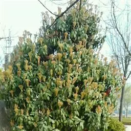②方法二:选择石楠大苗做砧木,在留有足够的骨干高度的状况下,把树冠整形修剪后,依据树冠枝条散布部位,依照树冠圆整性的要求,用芽接法在砧木上嫁接5-6个芽体,嫁接后留意实时抹芽,促接芽萌生,今后采用矮球型造形办法进行修剪,即可培养成高干红叶石楠球,由于芽接很轻易成活,采用此法培养红叶石楠高干球型苗木不只省工并且易操作,值得鼎力推行。