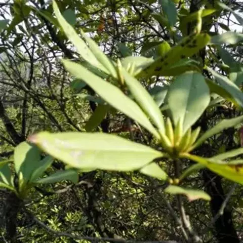 黄杯杜鹃:灌木,高约3米;幼枝嫩绿色,平滑无毛,老枝灰白色,树皮有时层状剥落。叶多密生于枝端,革质…