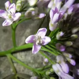 总状花序多花,花梗长10-14毫米;外轮萼片淡红色,长椭圆形,长5-6.5毫米,边缘膜质,外面有毛或无毛,内轮萼片基部囊状;花瓣淡紫色、紫红色,少有白色,倒卵形,长9-14毫米,顶端圆或微凹,向基部渐狭成爪;花丝扁平;子房柱状,花柱短。长角果扁平,长35-45毫米,宽2-3毫米;果瓣平坦无毛,有时带紫色,花柱很短,柱头微凹;果梗直立开展,长10-25毫米。种子椭圆形,长约3毫米,褐色。花期5-6月,果期7-8月。