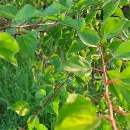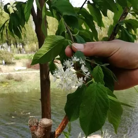 味馨一年生枝及新梢均为暗红色,主干及多年生枝灰红色,皮孔不明显,节间长1.8cm,叶柄长2.5cm,叶片呈圆形或阔卵形,浅绿色,叶长7.3cm,宽6cm,初花为粉红色,以后逐渐变为白色,花托短,花萼红色,雌蕊略高于雄蕊,授粉率高。栽植当年树干基径达到4.5cm,平均新梢基径1.5cm,单株当年新梢数28个,平均新梢长157cm,新梢停止生长期9月中旬。味馨抗性强,病虫害少,具有良好的抗倒春寒能力。