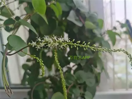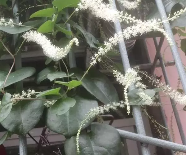 落葵薯(学名:Anredera cordifolia (Tenore) Steenis.)是落葵科、落葵薯属缠绕藤本植物,长可达数米。根状茎粗壮。叶片卵形至近圆形,顶端急尖,稍肉质,腋生小块茎。总状花序具多花,轴纤细,下垂,苞片狭,不超过花梗长度,宿存;花托顶端杯状,花常由此脱落;花被片白色,渐变黑,雄蕊白色,花柱白色,6-10月开花。