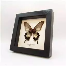 天堂凤蝶翅展可达105mm。前、后翅自基角至后缘约1/2~2/3端为纯净的宝蓝色,后角至后缘1/3…