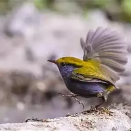 金色林鸲是鹟科、鸲属小型鸟类,体长12-15厘米。头顶至背黄橄榄绿色,眼先和头侧黑褐色,眉纹金橙黄色。…