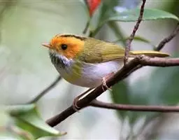 金冠地莺:形态与灰腹地莺相似,上体橄榄绿,前额至头顶渲染亮金黄色;下体几乎纯暗石板灰色,…