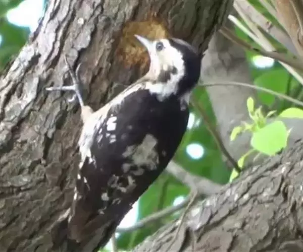 三趾啄木鸟,是啄木鸟科、啄木鸟属的小型鸟类,体长20-23厘米,雄鸟头顶金黄色,雌鸟黑色而具白色斑点。…