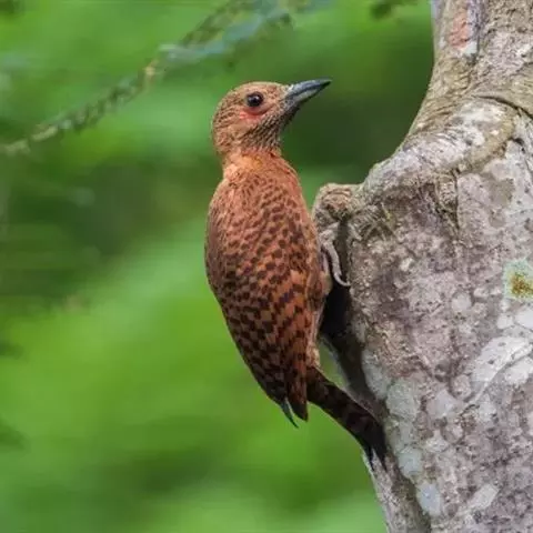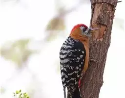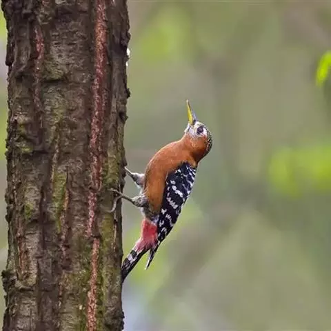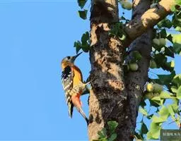 棕腹啄木鸟为啄木鸟科,啄木鸟属是中等体型的鸟类,体长约20厘米。头顶部具红色斑带。脚强健,有趾4个,…