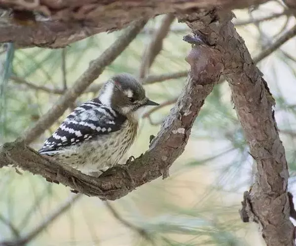 小星头啄木鸟(学名:Dendrocopos kizuki),是啄木鸟科、啄木鸟属的小型鸟类,体长12-17厘米,额、头顶至枕灰褐色,雄鸟枕两侧各有一深红色小纵斑;颊纹和眉纹白色,翕和颈侧具白斑,其余上体黑色,具白色横斑。翅黑色而具白色斑点。喉白色,其余下体污白色,具黑褐色纵纹。