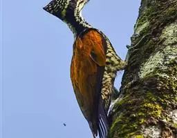 白腹黑啄木鸟,是啄木鸟科、黑啄木鸟属的中型鸟类,体长43-46厘米,头顶具长的红色羽冠,颚纹亦为红色,…
