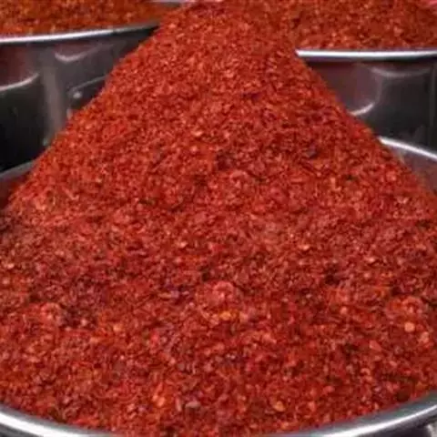 8.另准备少许蒜末,撒入盆中,油锅另备油,放入折断的干辣椒,下火炸至红棕色出香味,将辣椒油浇在蒜末上,顿时香味四溢。