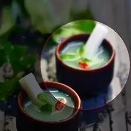 14.过滤鱼汤倒入碗中。