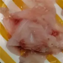 7.片好的鱼片,用一汤匙盐搓洗一遍后冲水反复淘洗成晶莹透明的鱼片,一定要洗成透明的鱼片,鱼肉比较有口感,而且清爽。