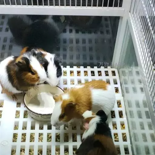 为了保持饲养箱内的干燥,建议使用滚珠饮水器。豚鼠的食盆避免选择塑料或其它会被啃食的材料,应当选择陶瓷或者不锈钢质地,有一定分量且不容易被打翻的。饲料早晚各加一次,豚鼠是夜行性动物,晚上要多喂一些。