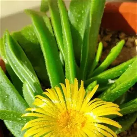 照波,番杏科多肉植物、此种生长较快,栽培容易,细长的浓绿色叶3厘米左右,开黄色花。…