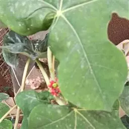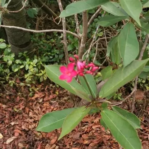 变叶珊瑚花,是大戟科麻风树属常绿灌木。变叶珊瑚花单叶互生,倒阔披针形,叶面为浓绿色,叶背为紫绿色,…