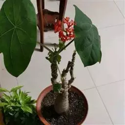 瓶干树又名佛肚树,学名是Jatropha podagrica Hook.,瓶干树的原生地是澳洲的昆…