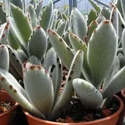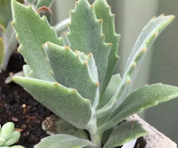 毛茸茸的毛、半边锯齿状的叶,缺口会再冒出小芽,夏型(冬眠),喜光照、可直晒、耐热(但要通风),适合春、秋。夏天要注意浇水不可过多,也不能太少。适合肥沃、排水性佳的沙土。很会长,可长到30公分左右,日晒不足会徒长春秋夏初是生长旺季