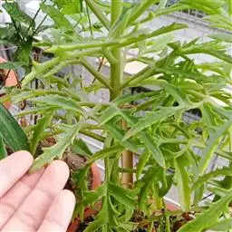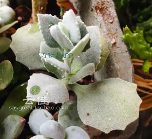 和其他兔耳一样,千兔耳叶子表面也是有一层软绒毛,摸起来很有手感,千兔耳的美,除了它的毛毛叶外,还有那非常对称整齐的对生叶,锯齿状的叶,有点萌萌白枫叶的即视感,整体跟人一种毛绒绒的可爱感。枝干易木质化,可通过断水来塑型。也有称白兔耳可开粉红色的花。大概因为其叶片多呈现白色,因此也有人误称为白兔耳,白兔耳的叶片会更像兔子耳朵的细长感,可以参照下图。相对来说,白兔耳会比较少见,价格也更贵点。