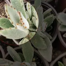 褐斑伽蓝是景天科、伽蓝菜属多年生肉质草本植物或小灌木。全株灰白色,密布白色茸毛。叶片长卵形,…
