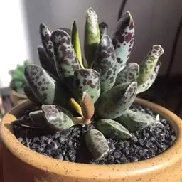 褐斑伽蓝是景天科伽蓝菜属的多年生多肉类植物,茎直立,多分枝,叶生于枝上,肉质叶片匙形,…