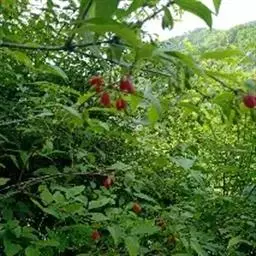 落叶灌木植物,果实四月下旬成熟,天然抗病, 杈杷果 果色红艳娇嫩透亮,晶莹剔透,鲜红如玉,果形为八字形分叉。单果重2.5g至5g左右左右,糖酸比高达39:1,果实矿质原素含量极高,钙、铁、磷、氨基酸含量均高于其它果品,比苹果高出24倍,铁的含量比桃高出5倍,磷的含量已是报道过的所有果品之最,味美爽口,中国农科院《作物品种资源》杂志曾作过介绍。四月下旬成熟,天然抗病,果色鲜亮,鲜红如玉,椭圆连体形。由于富含矿质原素高,具有非常好的保健美容效果,而且具有抗癌作用。