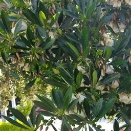 水石榕是杜英科杜英属小乔木。树冠宽广;幼枝无毛;叶革质,窄倒披针形或长圆形,先端尖,基部楔形,…