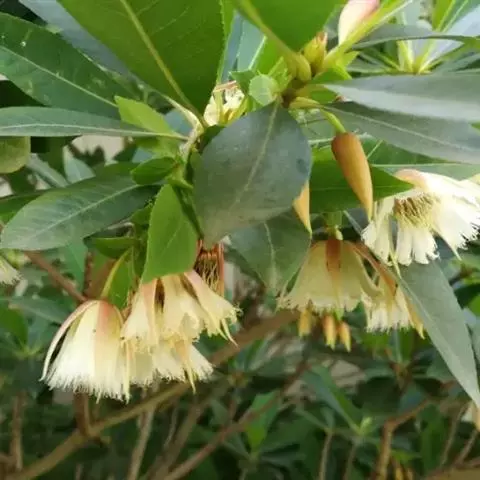 海南杜英,属杜英科杜英属的常绿小乔木。树冠整齐成层,枝条无毛。叶子聚集在顶端生长,狭披针形或倒披针…