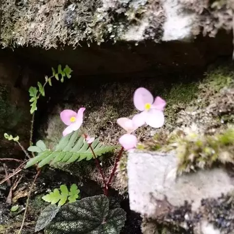 掌裂叶秋海棠无(学名:Begonia pedatifida Levl.)秋海棠科,秋海棠属的多年生草本植物,根状扭曲茎粗,长圆柱状,叶自根状茎抽出,叶片轮廓扁圆形至宽卵形,裂片均披针形,稀三角披针形,上面深绿色,散生短硬毛,下面淡绿色,沿脉有短硬毛,托叶膜质,卵形,花葶高7-15厘米,花白色或带粉红,二歧聚伞状,苞片早落;雄花被毛或近无毛,花药倒卵长圆形,子房倒卵球形,蒴果下垂,果梗无毛;轮廓倒卵球形,种子褐色,小而光滑长圆形,极多数,6-7月开花,10月开始结果。