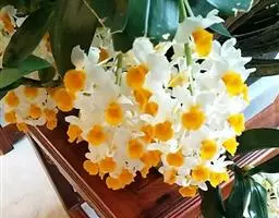 红花石斛:茎直立或悬垂,圆柱形,有时中部增粗而稍呈纺锤形,基部收窄,不分枝,具多个节。叶薄革质,…