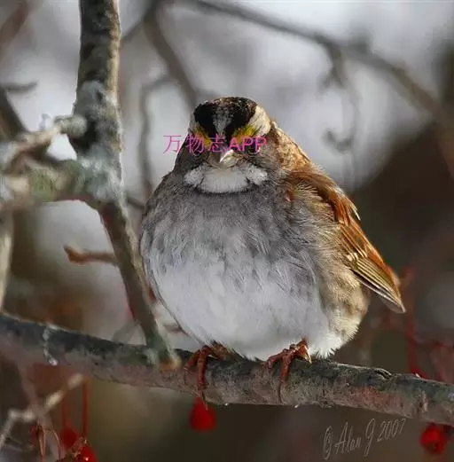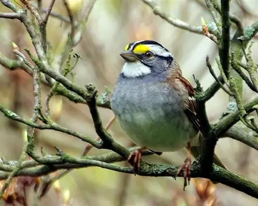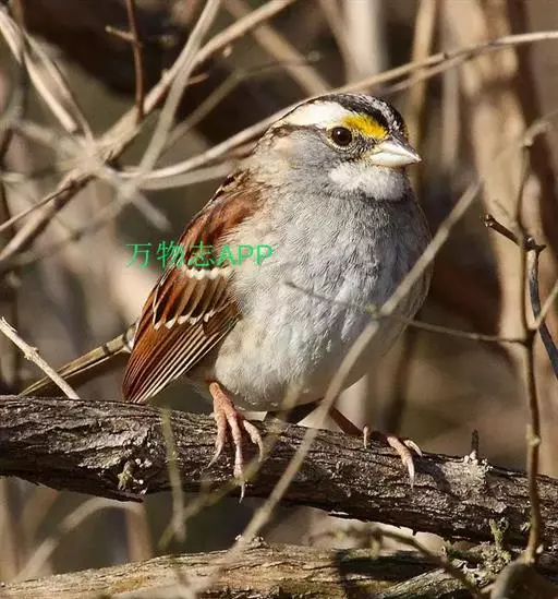 白喉带鹀(学名:Zonotrichia albicollis)属小型鸣禽,头部有独特的标记,背部褐色,有黑色条纹,与雀科的鸟类相比较为细弱,上下喙边缘不紧密切合而微向内弯,因而切合线中略有缝隙。通常栖息于半开放的地区的灌木丛。主以草子、种子、果实等植物性食物为食,也吃昆虫和蜘蛛。非繁殖期常集群活动,繁殖期由雌鸟在地面或树上、灌丛内筑碗状巢,卵蓝绿色或淡绿色,12至14天孵化。雄鸟帮助喂养雏鸟。
