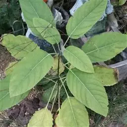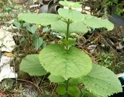 叶形变化很大,最下部茎叶心状圆形,长7-12厘米,宽6-9厘米,3裂,裂片上常有深缺刻,先端锐尖,基部心形,草质或坚纸质,上面绿色,下面淡绿色,两面均疏被短硬毛,侧脉3-6对,与侧脉在上面下陷,背面明显突出,叶柄长约2厘米;茎中部叶通常卵圆形,先端锐尖;花序上的苞叶变小,卵圆形或卵圆状披针形,先端长渐尖,边缘具不等大的锯齿,或为深裂,或近于全缘。