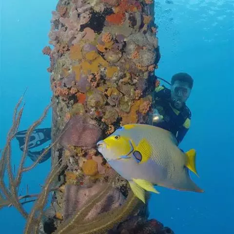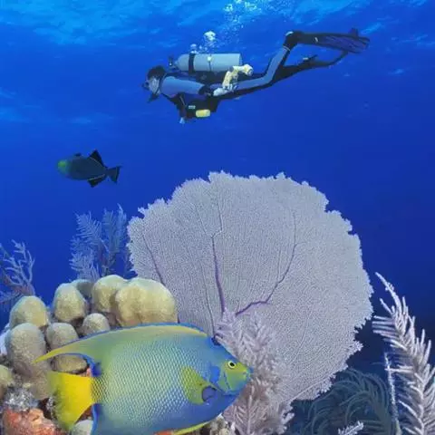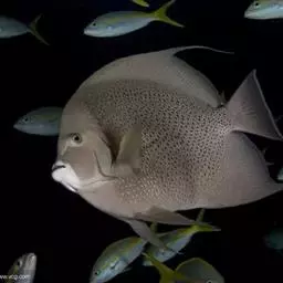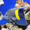 额斑刺蝶鱼,体卵圆形侧扁,有鲜明蓝色轮廓和数条鲜蓝竖纹,全身密布网格状具蓝色边缘的珠状黄点,深蓝色…