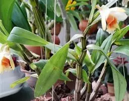 细叶石斛:茎直立,质地较硬,圆柱形或有时基部上方有数个节间膨大而形成纺锤形,通常分枝,具纵槽或条棱。…