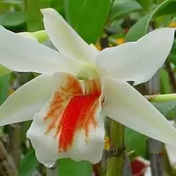 重唇石斛:茎下垂,圆柱形或有时从基部上方逐渐变粗,具少数至多数节。叶薄革质,狭长圆形或长圆状披针形。…