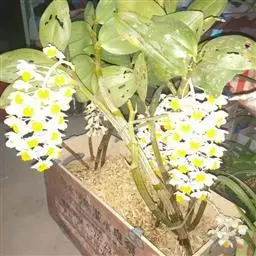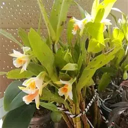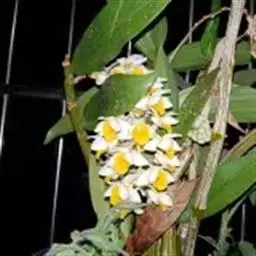 美花石斛是兰科石斛属多年生草本。茎柔弱,斜立或下垂,呈细圆柱形,有时分枝;叶互生于茎上,…