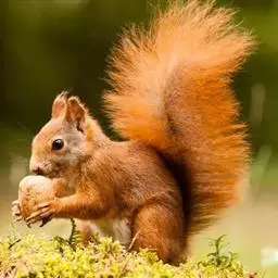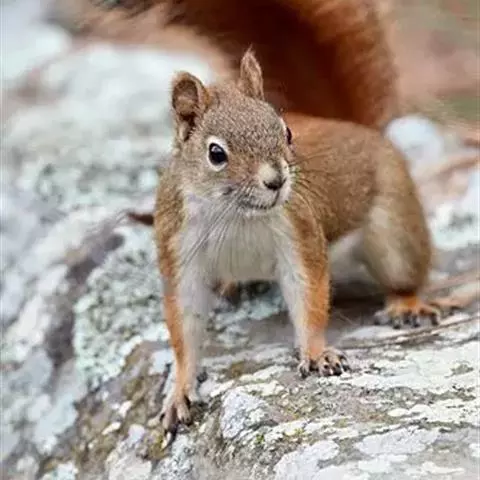 松鼠,隶属啮齿目松鼠科,泛指一大类尾巴上披有蓬松长毛的啮齿类动物,现存约有58属285种,分布遍及南极以外的各大洲(在大洋洲为引入种) 。
