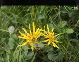头状花序单生,或圆锥状排列,卵圆形,径7-8毫米,有或无舌状花;花序梗较短,长2.5-6厘米,少有更长,顶端有疏短毛;总苞片约8个,2层,绿色,卵形或卵状长圆形,顶端钝或稍尖,长2.5-3.5毫米,无毛或边缘有缘毛;花托锥形,长3-5 (6) 毫米,托片膜质,倒卵形;花黄色,雌花舌状,舌片宽卵形或近圆形,长1-1.5毫米,顶端3浅裂;两性花花冠管状,长约2毫米,有4-5个裂片。