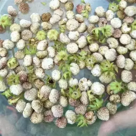中国的野生的“白草莓”和菠萝莓不是一个品种,果实未成熟是颜色为红色,变为白色后成熟,香味浓烈,微甜,是日本白草莓“桃熏”的亲本。