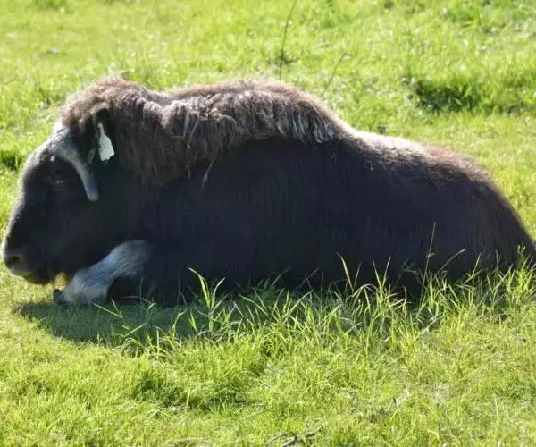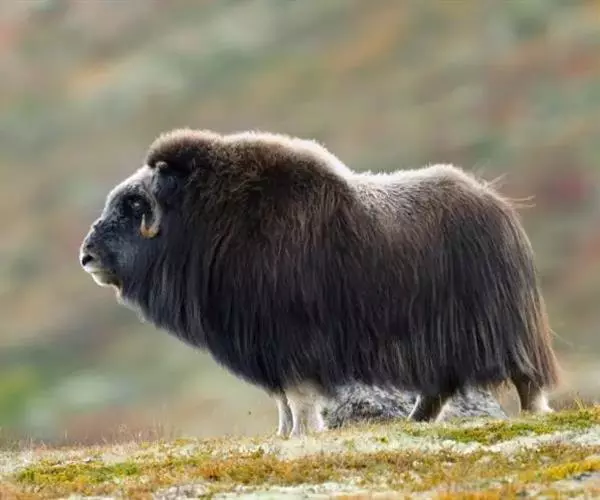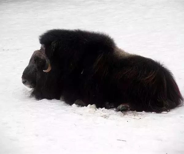 麝牛是偶蹄目牛科麝牛属的唯一物种,仅有二个亚种。体长180-230厘米,尾长9-10厘米,肩高一般120-150厘米,体重200-410千克。 麝牛躯体敦实。雌性略小。吻、鼻部裸露,前额有簇毛。眼大而圆,瞳孔紫蓝色,唇和舌尖也是紫蓝色。两只小耳也被毛所遮。体毛长,绒毛丰满,为暗黑棕色,颈背至肩部有鬣毛,长逾30厘米,略有卷毛,下垂如披风。毛分成两层,长毛下面还有一层厚绒毛,叫毛丝,既坚韧,又柔软,可挡住寒冷和潮气,上层针毛可防雨、雪并耐磨。躯干背部是鞍形的浅色毛。年龄愈大,白色区愈明显。尾很短,隐在长毛下面。四肢短而强壮,蹄子宽大开扩,蹄下生有白色的毛,能踏冰雪而不滑。有趣的是,它的左、右蹄并不对称。雌、雄均有角,角基部扁厚,由正中均分,贴着头骨向外侧生长,两角先向下弯曲,而后又向上挑起。长度在60厘米左右,最长的纪录是70.5厘米,雌角短小得多。