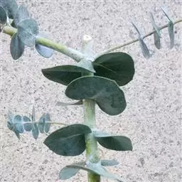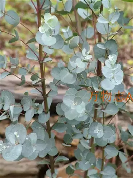 银叶桉是常绿灌木或小乔木,株高可达3米。幼叶对生,无柄,阔卵形或阔盾形;老叶互生,呈披针形,两面均被白粉,银绿色。