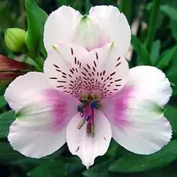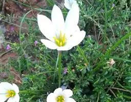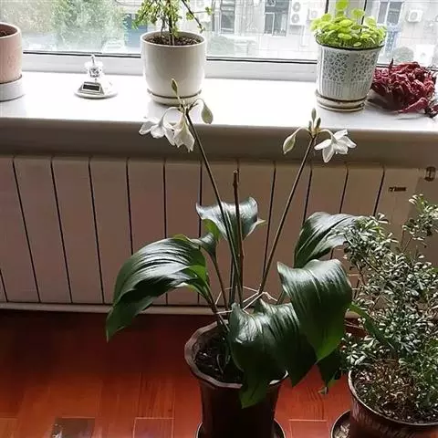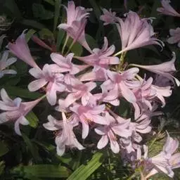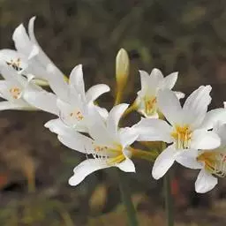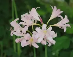 长筒石蒜草本,地生。鳞茎卵球形;叶披针形;伞形花序,有花5-7朵,花白色;花被裂片腹面稍有淡红色条纹,…