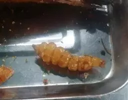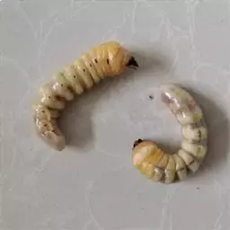 斗米虫为锈色粒肩天牛的幼虫,锈色粒肩天牛主要危害槐树Sophora japonica,…