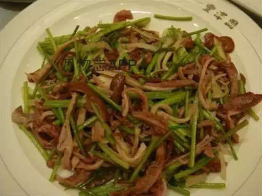 爆肚丝: 生猪肚用盐搓,清水洗净,切葱蒜姜及香菜。