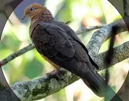 斑尾鹃鸠体长38厘米,是体大而尾长的褐色鹃鸠。背及尾满布黑色或褐色横斑。头灰,颈背呈亮蓝绿色。胸偏粉,…