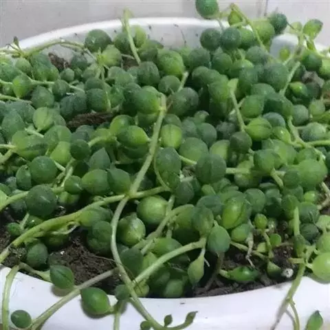 珍珠吊兰因鼓鼓、饱满翠绿的椭圆形小叶子形似珍珠状而得名。又名翡翠珠、 佛珠吊兰、翡翠珠、绿之铃,绿铃。…