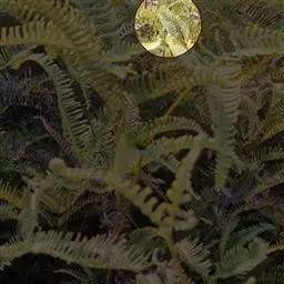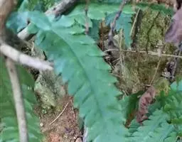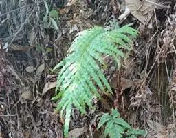 在它的叶片背面有许多孢子囊群,看起来像一个个黄色小点,里面长着许多孢子,它们就是靠这些孢子繁衍后代的。孢子成熟后随风飘散,落到土壤中,先萌发长成一个心脏形的绿色扁平的原叶体,能进行光合作用。腹面生有假根,能独立生活。
